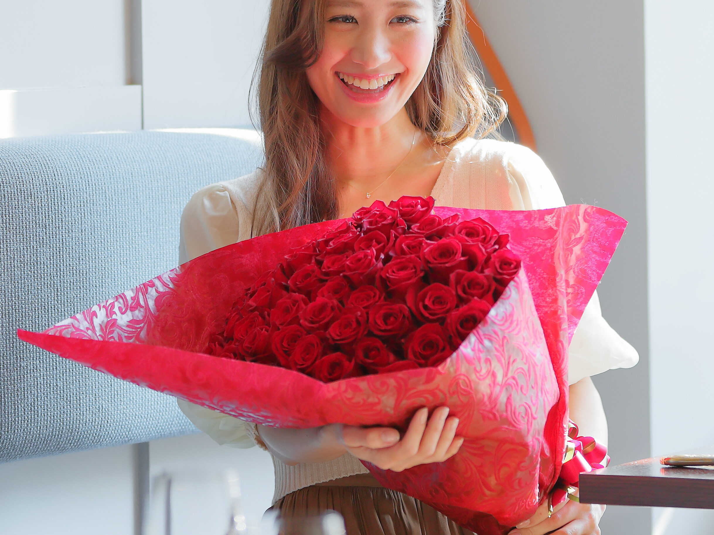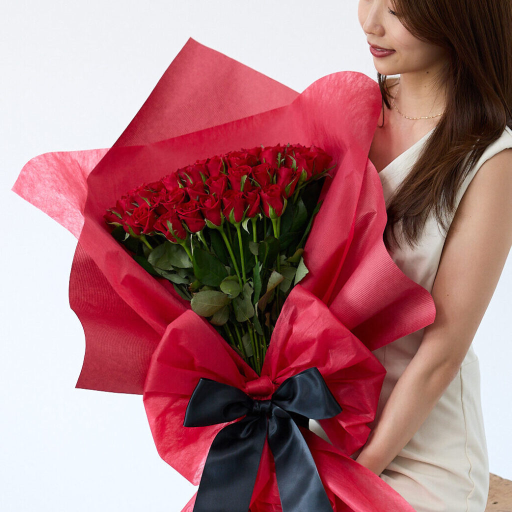 女性がもらって嬉しい色No1で、フラワーギフトの王道「バラの花束」