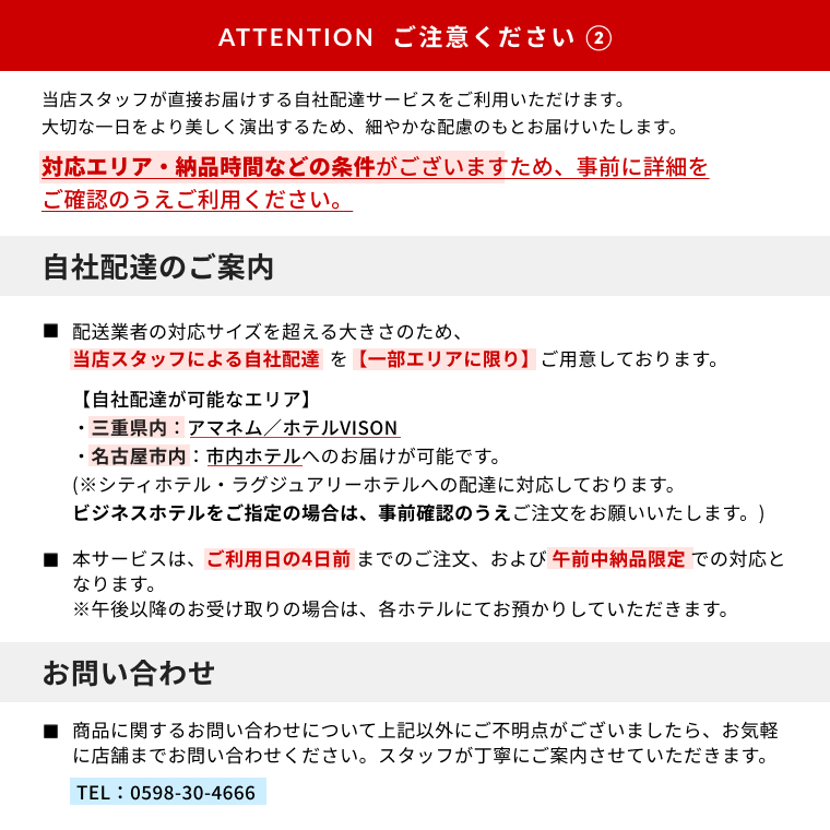 ※条件を満たす場合は【当店スタッフによる自社配達】を承っております。