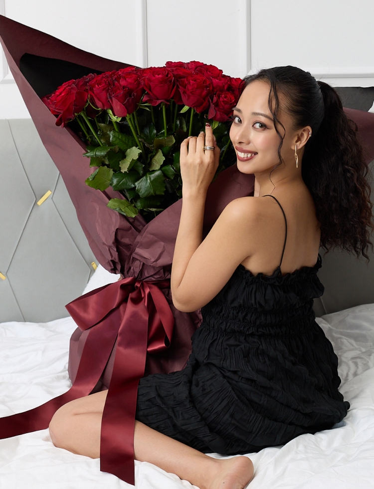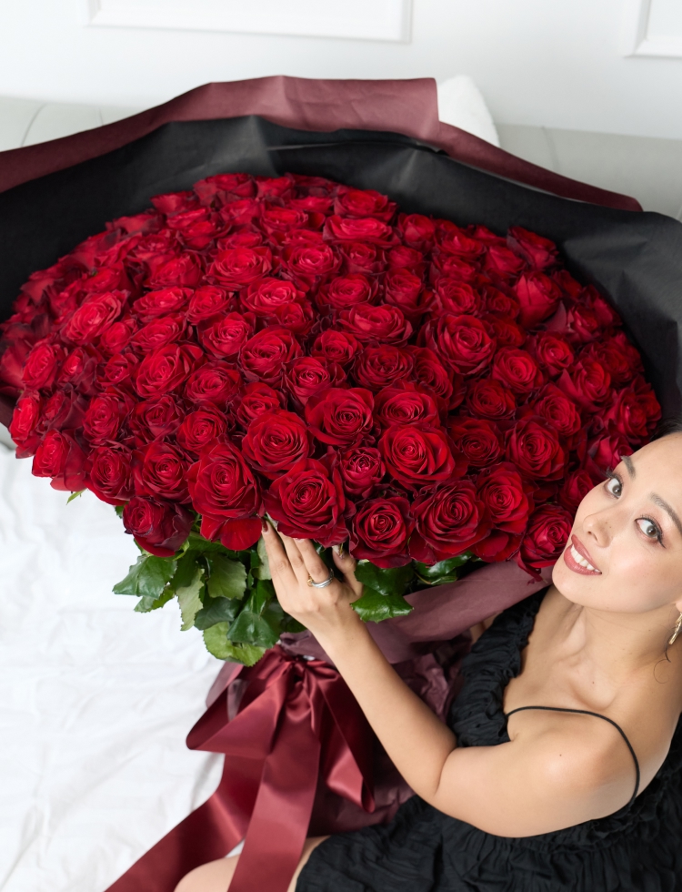 108本のバラで仕立てる、圧巻のラウンドブーケ。