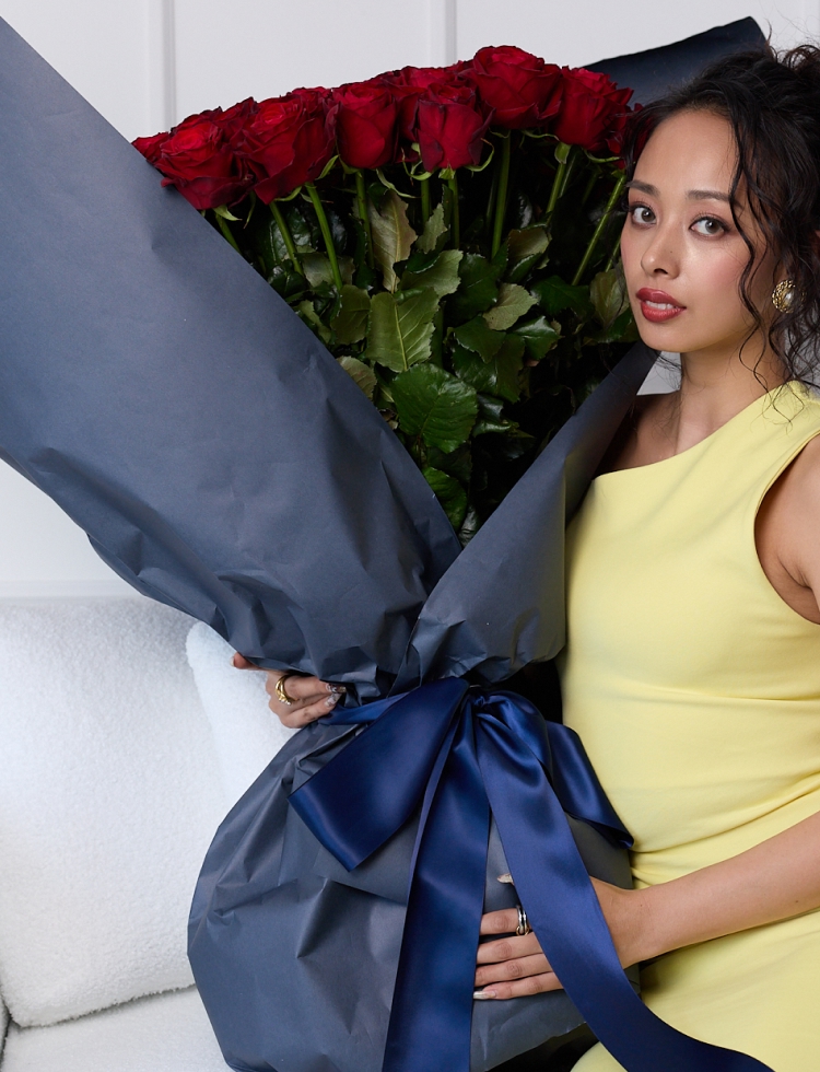 80cmのロングステムと、冬ならではの花首の大きなバラを贅沢に使用。